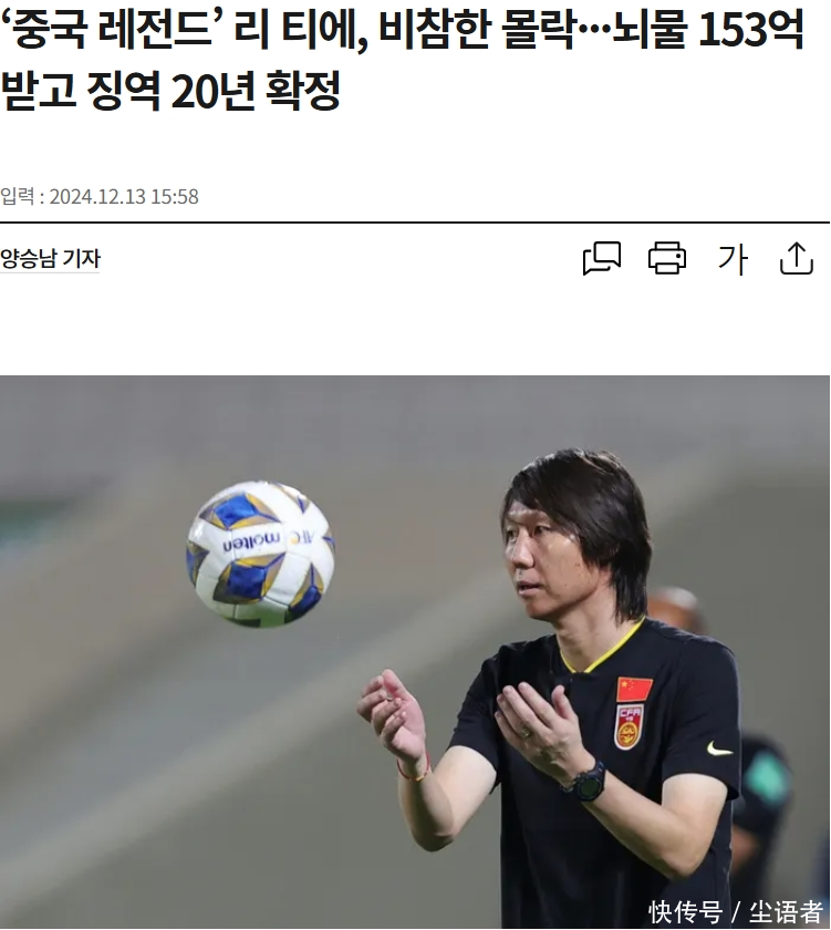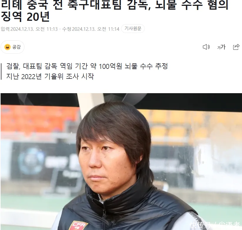 点击输入图片态状(最多30字)四肢前中国男足国度队的主训诫,而况投入过韩日宇宙杯,还曾在英超赛场上踢过球的李铁,在国外足坛还是有一定的影响力。是以,他的此次被判处重刑,也让不少番邦媒体对此进行关心。其中,韩国媒体媒体《news1》就以“前中国国度队主训诫李铁因涉嫌纳贿被判20年有期徒刑”为题进行了专诚报谈。